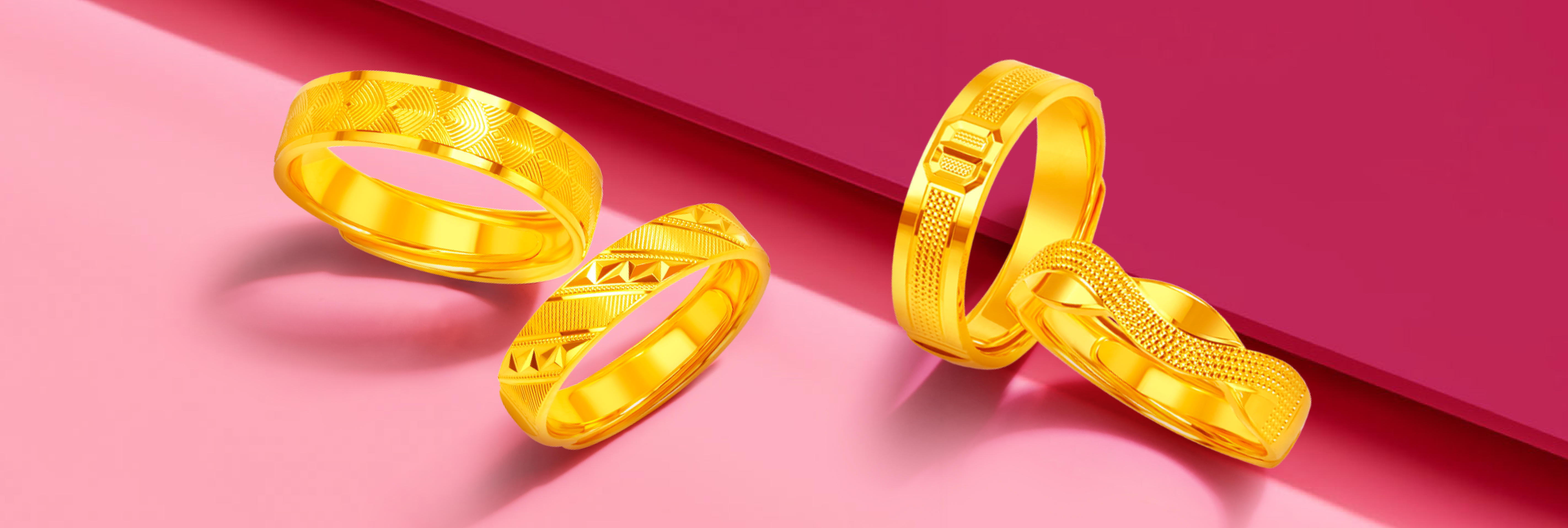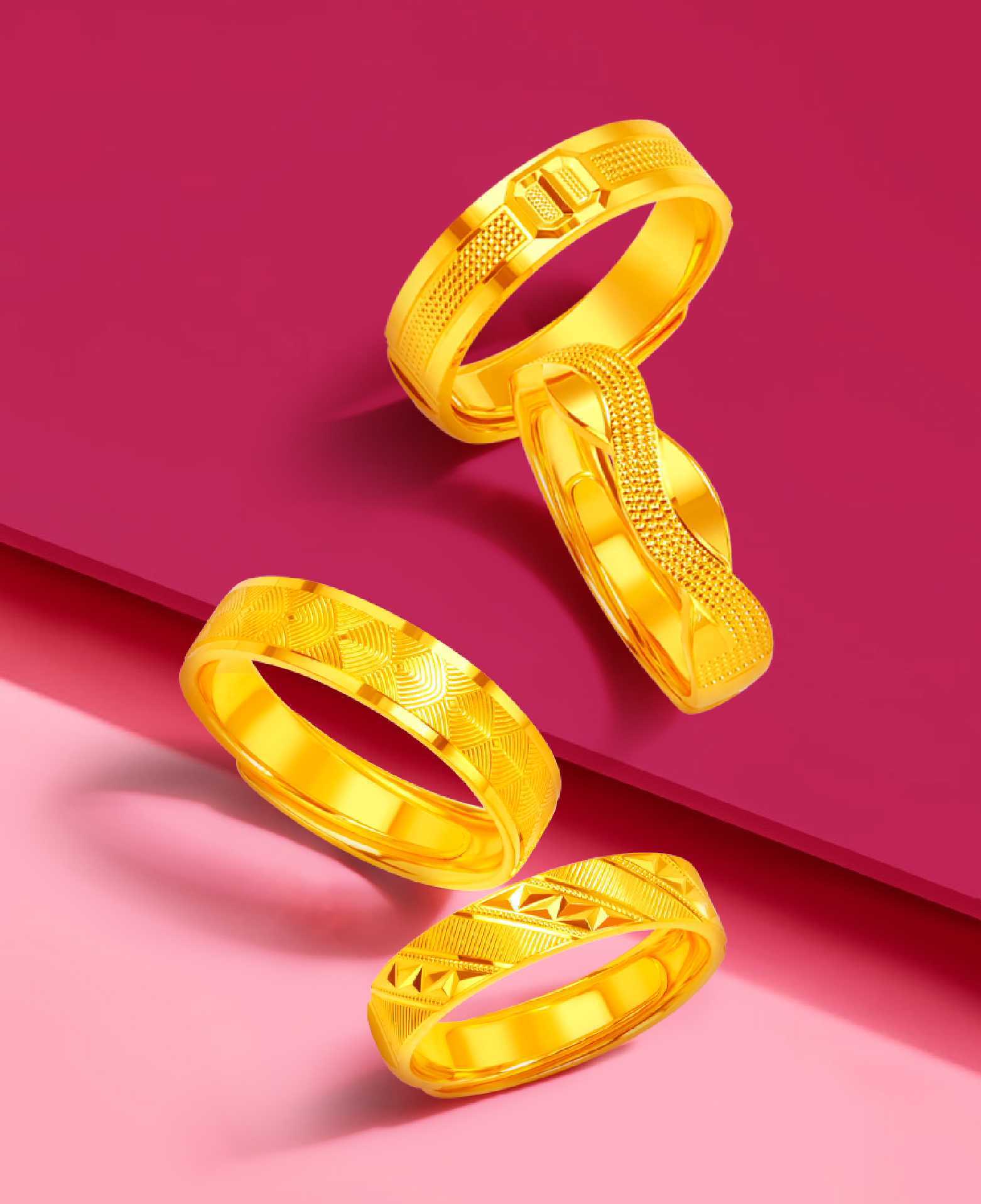 Of course, who said your yellow gold wedding ring has to follow the tried-and-true silhouette of a plain, uninterrupted band? Couples leaning towards a more contemporary aesthetic may prefer the geometric shapes of the LVC 9IN Chevronne Eternity Loop 999 Gold Ring (free size), LVC 9IN Maya 999 Gold Ring (free size), and LVC 9IN Duo Twist 999 Gold Ring (free size). Not only can these rings be effortlessly dressed up or down to suit any occasion, but their loop-inspired designs symbolise how you and your partner’s lives, souls, and futures are now bound together as one.