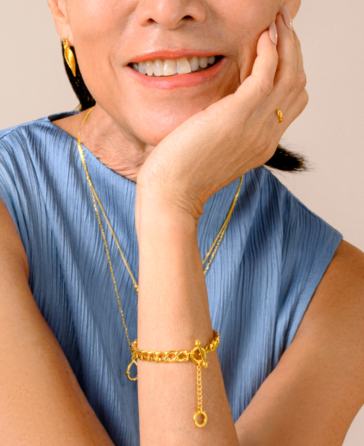 If you’re on the lookout for yellow gold jewellery instead, our 999 gold collection blends tradition with modernity, crafting this precious material into distinctly contemporary designs. Take the LVC 9IN Blessings Hoop 999 Gold Bracelet (From $522.75) for instance, which quietly incorporates the fortune ‘Fu’ symbol into an understated bracelet. Or the LVC 9IN Alexandra 999 Gold Ring (From $770.15), which reimagines vintage ring forms with a geometric flair. There’s also instant classics like the LVC 9IN Jayla 999 Gold Necklace (From $745.63) and LVC 9IN Revolving Barrel 999 Gold Necklace (From $891), which Mum will be able to dress up or down with ease.