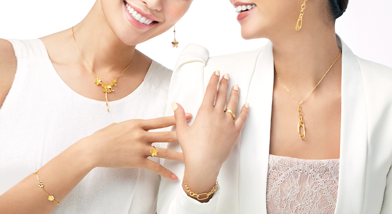 Love & Co.'s 9IN collection is a perfect example, with options like the LVC 9IN Helena 999 Gold Bangle, LVC 9IN Oriental Lily 999 Gold Necklace, LVC 9IN Double Bliss 999 Gold Drop Earrings, 9IN Circle Floret 999 Gold Ring offering timeless elegance suitable for both bridal and everyday outfits.