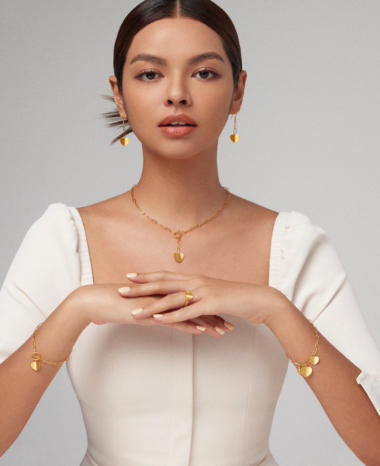To pay homage to traditional silhouettes, opt for nature-inspired designs like the LVC 9IN Tangled Clover 999 Gold Pendant, LVC 9IN Wildflower 999 Gold Necklace, LVC 9IN Wildflower 999 Gold Ring, LVC 9IN Butterfly 999 Gold Pendant, LVC 9IN Golden Hibiscus 999 Gold Drop Earrings, and LVC 9IN Interlocking Rings 999 Gold Bracelet. These motifs echo traditional nature motifs popular across Southeast Asia while maintaining a contemporary flair. Made with enhanced 5G 24 karat fine gold, their breathtaking beauty is sure to stun no matter how you choose to style them.