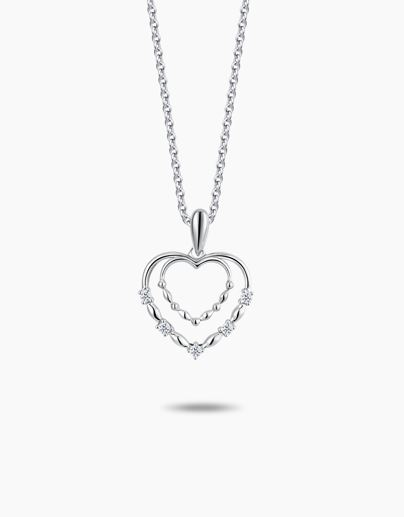 A layered heart design with subtle diamonds reflects timeless connection. Perfect as a thoughtful gift or keepsake for understated, sentimental style.