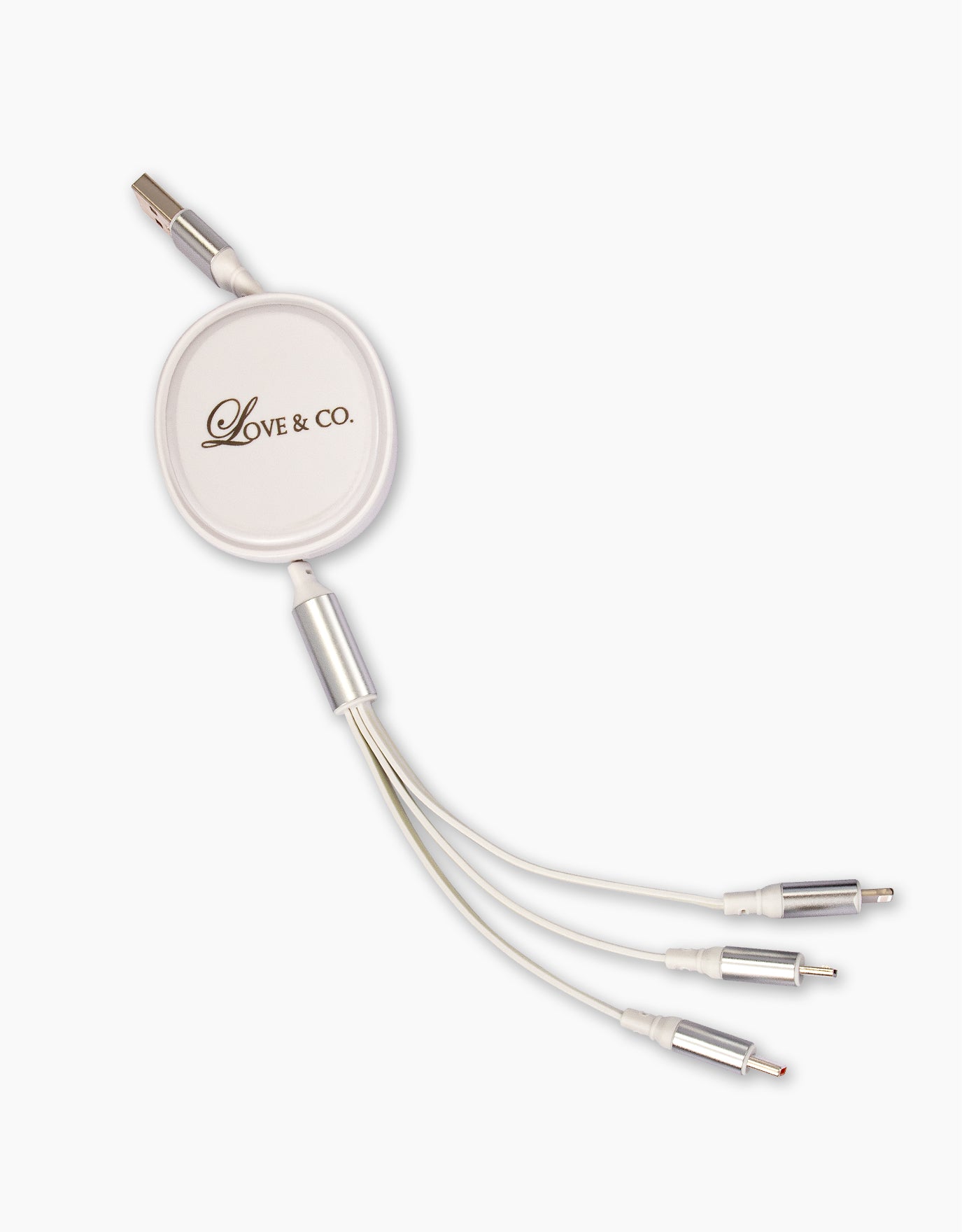 This Love & Co. exclusive 3-in-1 retractable cable keeps charging simple, portable, and completely tangle-free wherever you go.